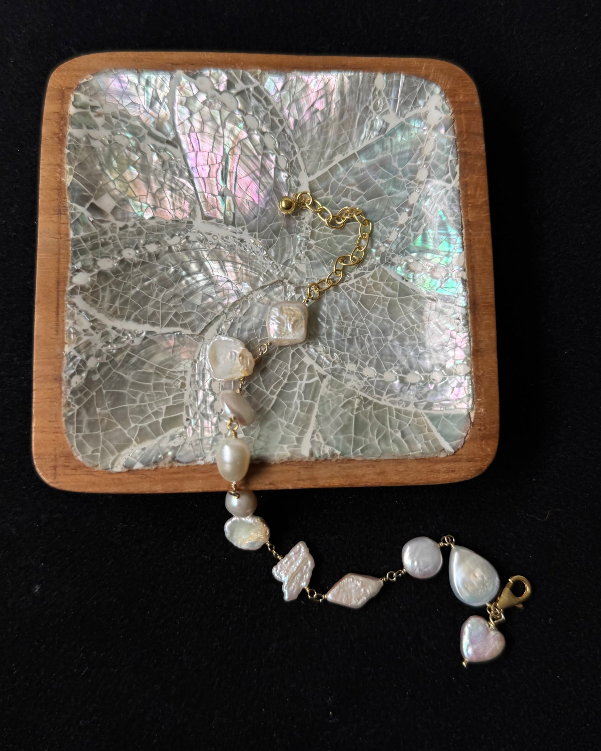 This bracelet has been made using a massive variety of exotic freshwater pearls and comes with a lobster clasp closure with additional chain. It's been hand-wired to perfection using gold plating on sterling silver metal components.
